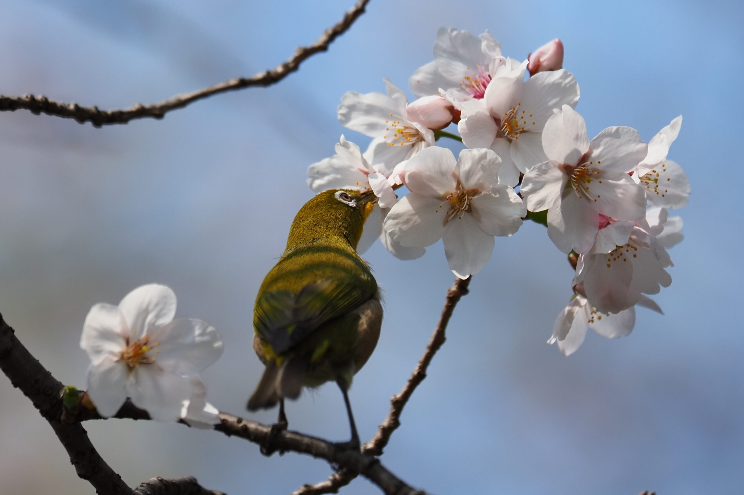 桜咲き メジロ蜜吸う のどかさよ 花・生き物桜の蜜を吸うメジロ 2026.03.29 桜はまだ三分咲きといった感じでしたが、新しいレンズを提げてお隣の神社に繰り出しました。鳴き叫んでいない孤高のヒヨドリと、撮りたかったメジロに会えて満足。 透ける花びらの桜 枝垂れ花? 背景を玉ボケにしたかった桜 正面下から見上げるヒヨドリ、頭がフサフサ 孤高のヒヨドリ 桜の蜜を吸うメジロ アクロバティックな体勢で蜜を吸うメジロ いかにもメジロって感じでステキ!